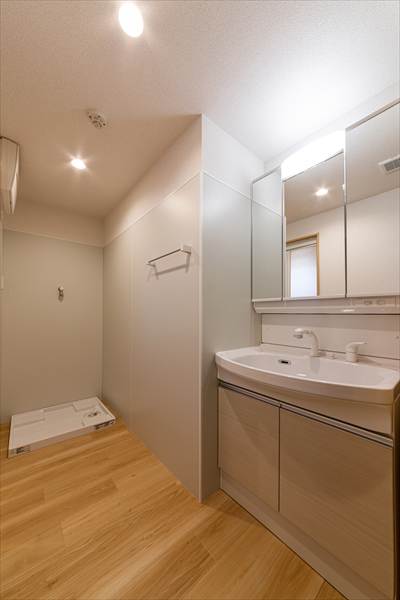 2-1. ゲリラ豪雨等の水害に対し、雨水の流出を抑える雨水貯留浸透施設の設置近くを流れる逢妻男川「境川」の流域は総合治水対策のため、特定都市河川流域に指定されています。そのため雨が降った時に雨水の敷地外への流出を田畑の時の状態と同等の量となるように計画し「雨水貯留浸透施設」を設置しました。駐車場の地中に建物の屋根に降った雨を貯める雨水貯留浸透槽「水槽」を埋め、そこで一端建物に降った雨を貯めてからゆっくりと敷地外に放流するようになっており、駐車場や専用庭に降った雨も一端舗装の中に貯めて地中へ浸透させる「透水性舗装」という仕様にしております。このような対策をおこなうことで、ゲリラ豪雨等が発生した場合でも、建設前と変わらないような敷地環境とし、建物が完成した後でも近隣地域に悪影響が発生しないように対策しております。