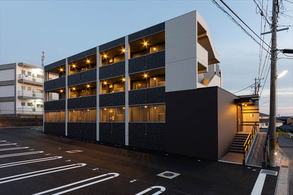 さすてな さすてな暮らし SDGsの取り組みとしてサステナブル「持続可能」で安心安全な建物を実現することを目的に、住まう人に災害対策を中心に「防災マンション」を設計コンセプトとし計画しました。「さすてな」の災害対策として、大きく分類し以下の2点をご説明させていただきます。 1.地震災害対策と火災予防 地震と火災に強い鉄筋コンクリート造 壁式構造を採用し、防火性と耐震性の高い建物となっております。また、住宅性能表示制度に定められる耐震等級3の耐震性を有する建物となります。耐震等級とは、地震に対してどれだけ倒れずに耐えられるか「倒壊等防止」、地震の後でも大きな修復をしなくて済むかどうか「損傷防止」の2種類の性能を表しています。それぞれの地震力は建築基準法で定められています。 耐震性能最高基準 耐震等級3とは 耐震等級(倒壊等防止 / 損傷防止) 耐震等級3は消防署や官公庁など防災時に、重要な拠点となる建物と同等レベルの耐震性能を有するとされており、地震に対して非常に心強い建物になっています。 2.豪雨災害対策と地域貢献 2-1. ゲリラ豪雨等の水害に対し、雨水の流出を抑える雨水貯留浸透施設の設置近くを流れる逢妻男川「境川」の流域は総合治水対策のため、特定都市河川流域に指定されています。そのため雨が降った時に雨水の敷地外への流出を田畑の時の状態と同等の量となるように計画し「雨水貯留浸透施設」を設置しました。駐車場の地中に建物の屋根に降った雨を貯める雨水貯留浸透槽「水槽」を埋め、そこで一端建物に降った雨を貯めてからゆっくりと敷地外に放流するようになっており、駐車場や専用庭に降った雨も一端舗装の中に貯めて地中へ浸透させる「透水性舗装」という仕様にしております。このような対策をおこなうことで、ゲリラ豪雨等が発生した場合でも、建設前と変わらないような敷地環境とし、建物が完成した後でも近隣地域に悪影響が発生しないように対策しております。 2-2. 地域貢献の出来る災害用ガスバルクとガス発電機の設置 耐震性の高い建物が実現しても、実際に災害が発生した場合には、ライフラインである電気、ガス、水道が寸断され、生活困難な状況に陥ってしまいます。 今までの大規模災害でも救援物資の水の配給は早くても、その他ライフラインの復旧には時間がかかってしまう状況が多いのが現状です。そこで、ガスの復旧を待つことなく、敷地内にあるガスバルクから直接ガスが利用できる「災害用ガスバルク」を設置したことで、炊き出し等ができ、非常食が確保できます。併せて「ガス発電機」を設置することで、電気も作り出すことが出来ます。 用途地域 第一種低層住居専用地域 所在地 愛知県豊田市吉原町地内 竣工日 2023年10月27日 構造・規模 鉄筋コンクリート造 壁構造 3階建 間取り/戸数 1LDK 4戸 2LDK 7戸 設計 御幸建設株式会社 施工 御幸建設株式会社 敷地面積 1005㎡ 延床面積 636.49㎡ 一覧へ戻る