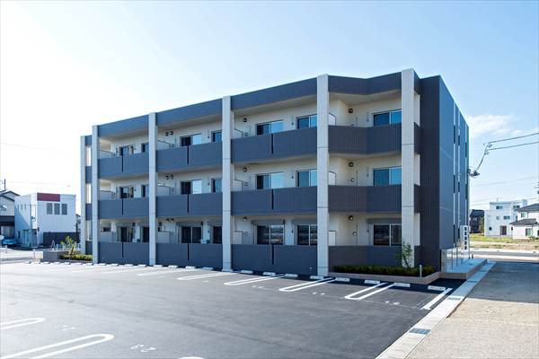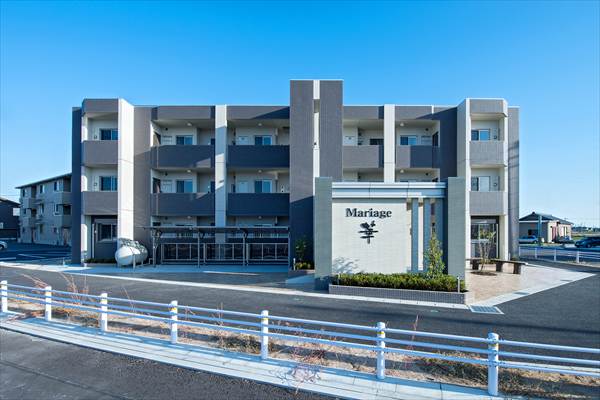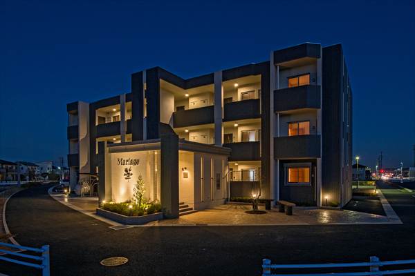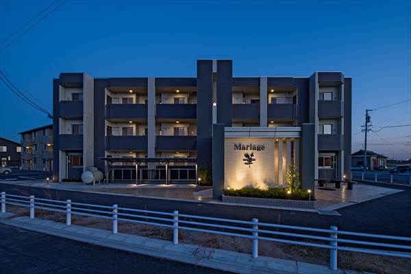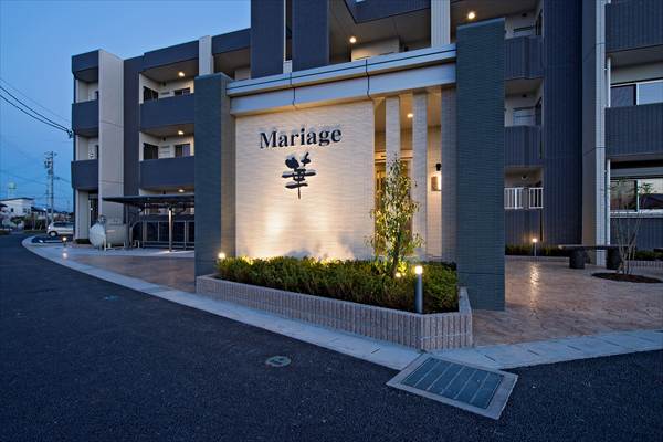 マリアージュ華 安城市の区画整理地内で3方道路敷地に計画されたマンション。道路巾20mと18mの都市計画道路角地に面する好立地にエントランスを交差点方向に向け細割りボーダータイルで壁を配慮しました。夜には壁面をライトアップする事で、マンション名を浮かび上がらせる演出をしました。 エントランスホールは風除室を設け宅配BOXを設置しました。また、オートロック式エントランスは防犯面でも安心です。 用途地域 第一種住居地域 所在地 安城市桜井地内 竣工日 2015年10月31日 構造・規模 鉄筋コンクリート造 壁構造 3階建 間取り/戸数 1LDK 6戸 2LDK 9戸 設計 御幸建設株式会社 施工 御幸建設株式会社 敷地面積 1093㎡ 延床面積 898.13㎡ 一覧へ戻る